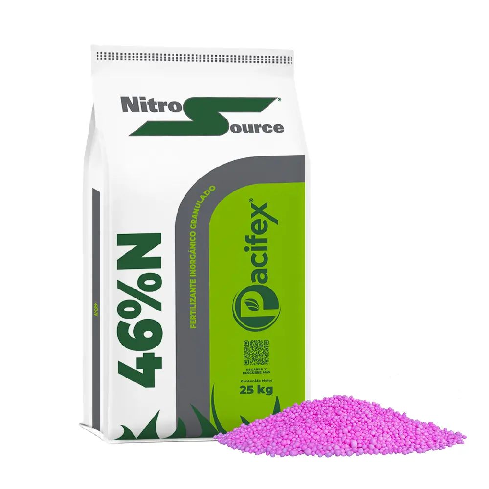 El NitroSource® es urea tratada con Nitrolock® que ayuda a reducir la volatilización y la lixiviación del nitrógeno.Se adapta a diferentes métodos de aplicación, asegurando una liberación más eficiente del nutriente.Con NitroSource® logras mayor eficiencia del nitrógeno, mejor aprovechamiento y cultivos más rentables.